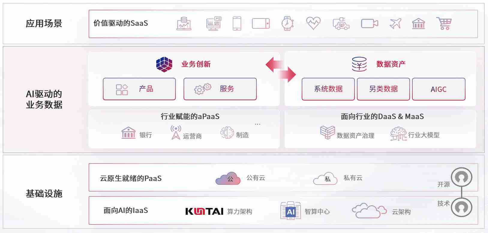 数字时代,,围绕企业数字化转型的关键要素,,,,银河集团数码开创性的提出数云融合战略和技术体系框架,,着力在云原生、、数字原生、、、AI原生和信创产业上架构产品和服务能力,,,,为处在不同数字化转型阶段的快消零售、、、、汽车、、、金融、、医疗、、、政企、、教育、、运营商等行业客户提供泛在的敏捷IT能力和融合的数据驱动能力,,,,构建跨界融合创新的数字业务场景和新业务模式,,助力企业级客户建立面向未来的核心能力和竞争优势,,全面推动社会的数字化、、智能化转型升级。。。